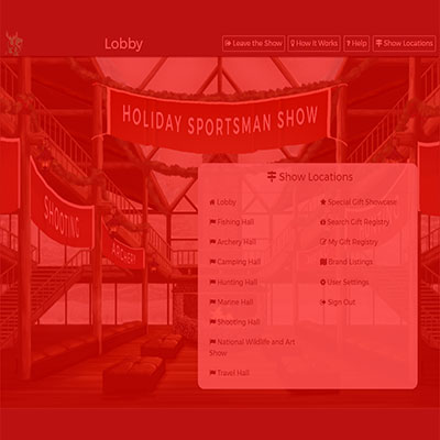 The Holiday Sportshow is an online digital platform designed to place your product in front of the consumer in a user friendly environment rich with audio, video and animation technology. Our exclusive Gift Registry feature allows the consumer to build a wishlist of products that can be shared with others or immediately puchased from the featured vendor.